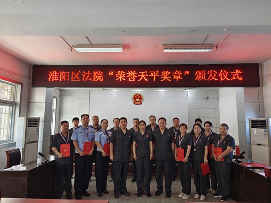 2022年7月1日,正值中国共产党成立101周年之际,为表彰从事法院工作累计满三十年、为人民法院工作作出贡献的法院工作人员,根据最高法院《关于颁发荣誉天平奖章的办法》,周口市淮阳区人民法院隆重举行荣誉天平奖章颁发仪式。党组书记、院长陶陶出席仪式并讲话,院领导班子全体成员、荣誉天平奖章获得者以及全院干警参加仪式。仪式由党组副书记、副院长冯明芳主持。