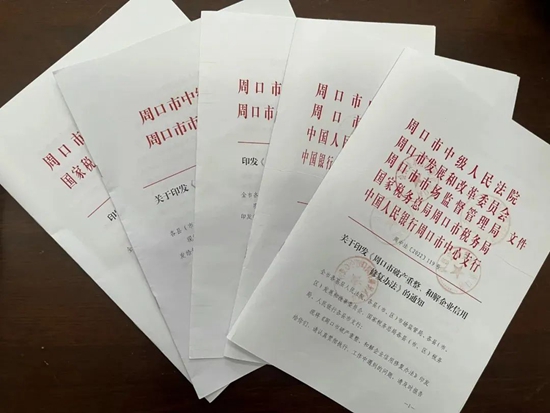 周口市中院与市政府联合出台《周口市人民政府关于建立企业破产工作府院联动统一协调机制的意见》,形成附院联动常态机制。与市税务局共同建立破产涉税问题联系机制;与市金融工作局、银保监分局、人民银行周口支行共同建立破产案件金融协作机制,加大对重整企业支持力度,有效提升困境企业挽救效率;与市自然资源和规划局联合建立不动产登记容缺办理机制;与市发改委、市市场监管局、市税务局、人民银行周口支行共同建立破产重整、和解企业信用修复机制,帮助企业重塑良好信用、健康良性发展。