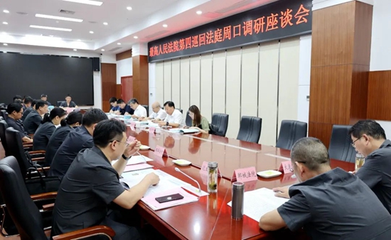 7月18日,最高人民法院第四巡回法庭分党组副书记、副庭长杨永清一行到周口中院调研指导,省法院审委会委员、二级高级法官马军杰,周口中院党组书记、院长马龙等陪同调研座谈。