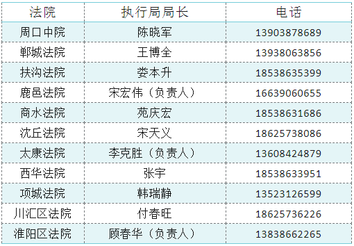 按照全市法院执行工作统一部署,凡群众来电,执行局局长和案件承办人员均需接听、落实。如有拒不接听、态度恶劣等情况,请反馈至周口中院监督电话:0394-8158203。