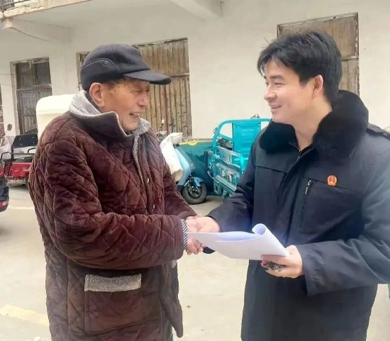 近日,扶沟县人民法院民一庭干警驱车数十里,将一份特殊的“包裹”——民事调解书,送到了94岁高龄的刘大爷家中。